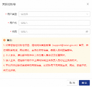 如果您之前在舊平臺注冊過賬號,且賬號的主體之前填寫并審核通過了,在新平臺登錄進去之后,您可以單擊關聯(lián)舊賬號。